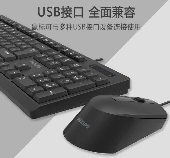 飛利浦SPT6234有線辦公鍵鼠套裝 筆記本臺式電腦USB商務(wù)鍵盤鼠標(biāo)