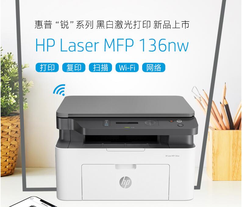 HP惠普M136w黑白激光打印機掃描復印一體機