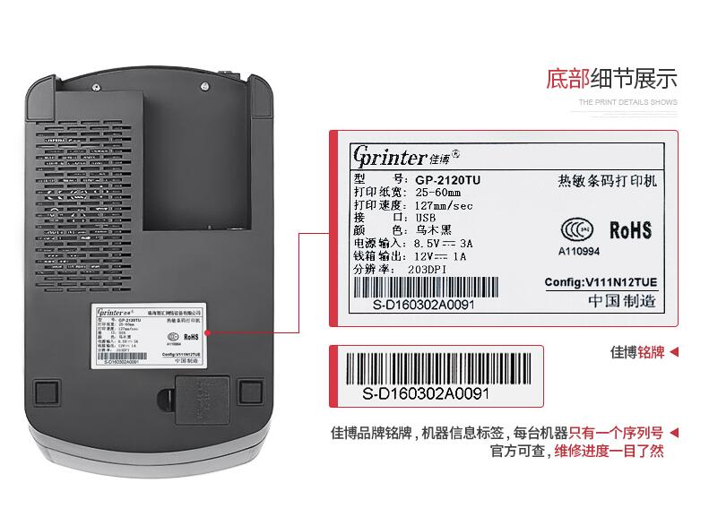 佳博GP2120TU熱敏打印機不干膠三防貼紙手機服裝吊牌貨架條碼藍牙二維碼奶茶超市面包食品價格倉庫標(biāo)簽打印機